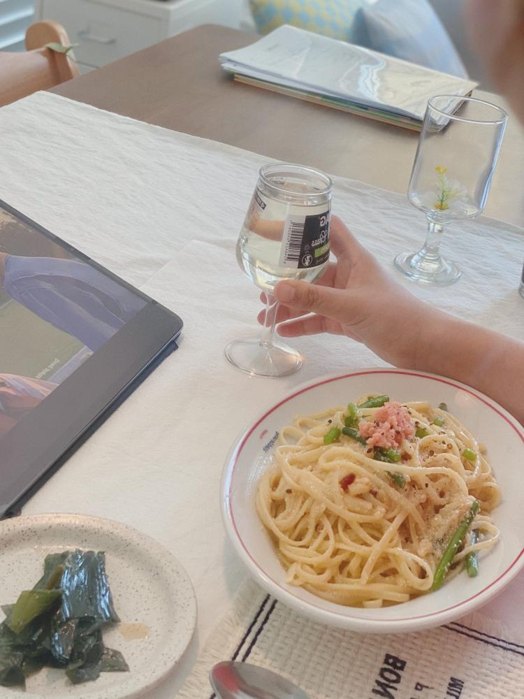 최애 명란파스타예요 화이트와인 빠질 수 없죠~