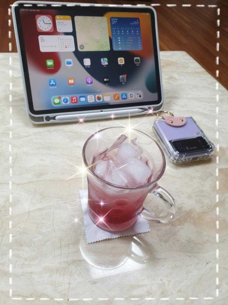 커피대신 얼음 둥둥띄어 시원한 오미자차 한잔 합니다