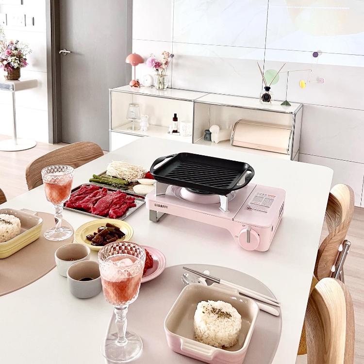 주말 식탁💗 원래같으면 고기를 인덕션에서 구워 먹었겠지만 홈캠핑 느낌으로다가 특별하게 식탁 위 가스버너로 더 맛있게😆 작은 변화로 재미도 있고 맛도 더 있던 어느 날☺️