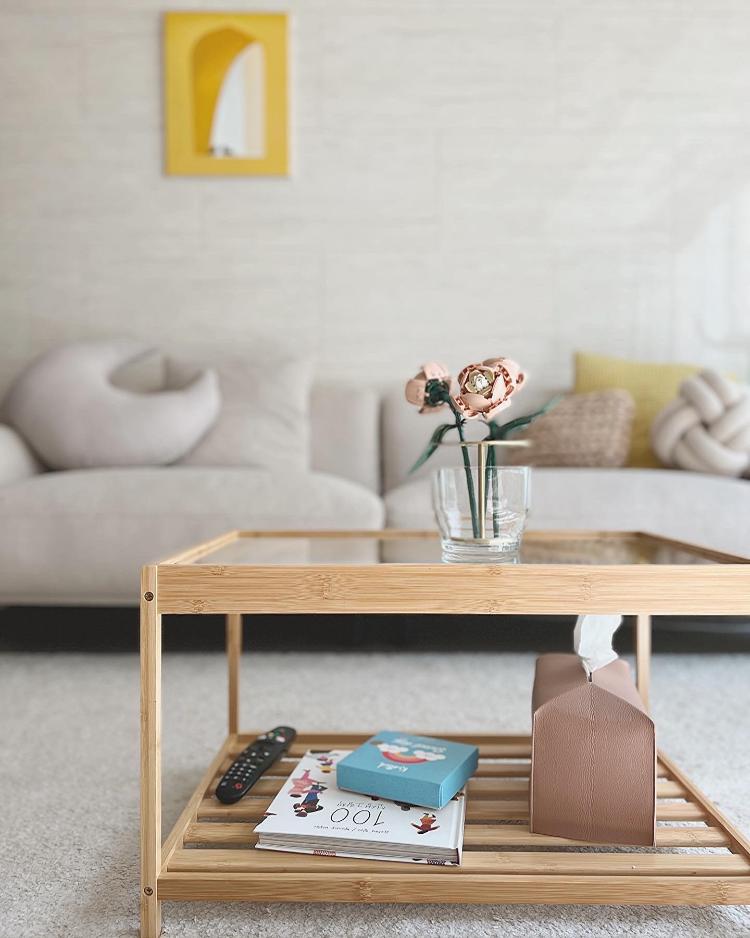 거실테이블 오늘따라 깔끔하고 예뻐보여서 한장찍어봤어요. 유리테이블은 답답해보이지 않는 장점이 있고 선반아래 물건이 보여서 찾기더 편하네요! 그리고 보이니까 알아서 정리하게 되는? : )