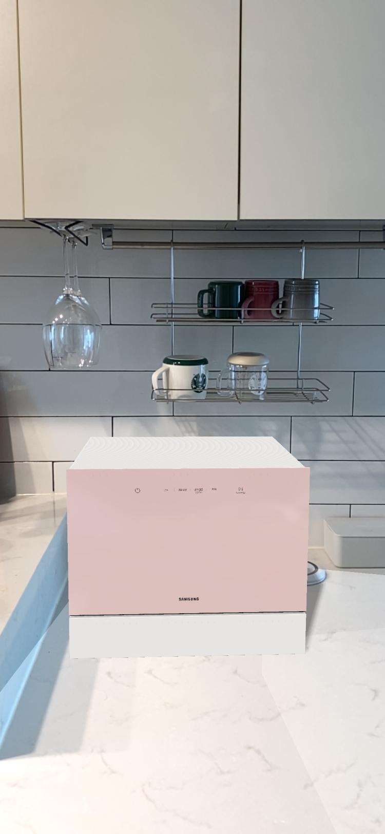 식기세척기가 핑크라니, 주방이 화사해졌어요!