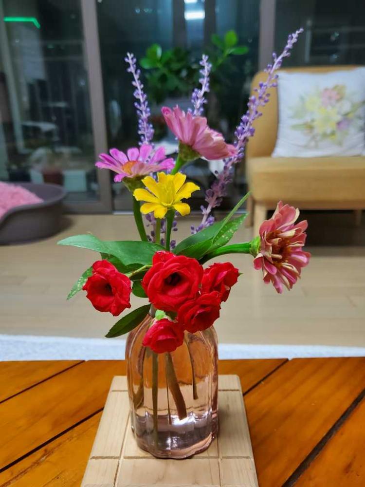 꽃이 있으니 기분이 좋아지고 집안이 환하네요