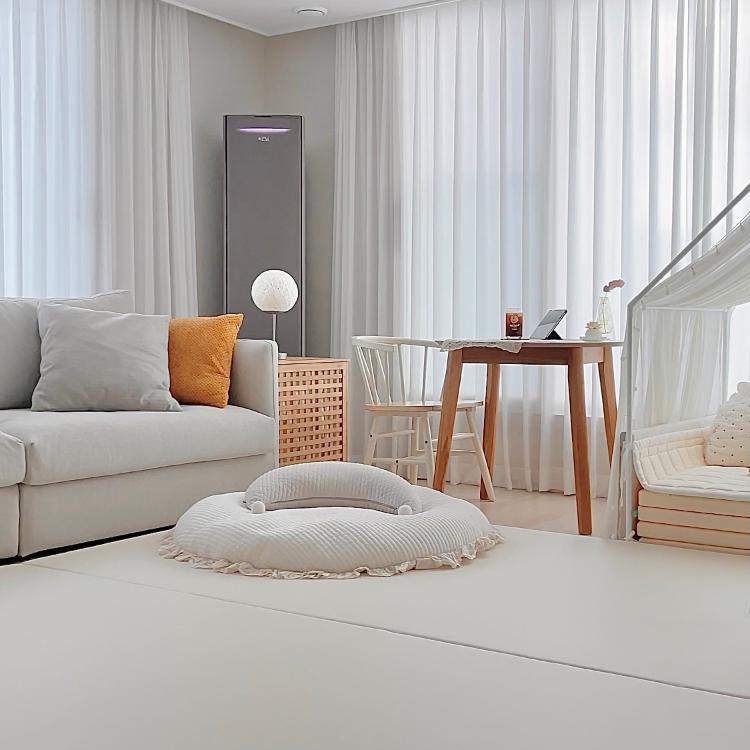 점점 아기 있는집으로 변신 중이에요. 거실에 매트도 깔고 아기공간이 늘어나고 있어요!