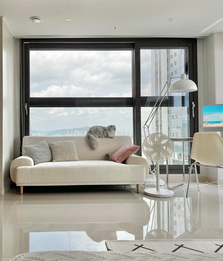 소파 위에 냉큼 올라가있는 고양이 ㅋㅋㅋ 창가 자리가 마음에 드나봅니다! 흐린 날도 나름 운치있네요~^^