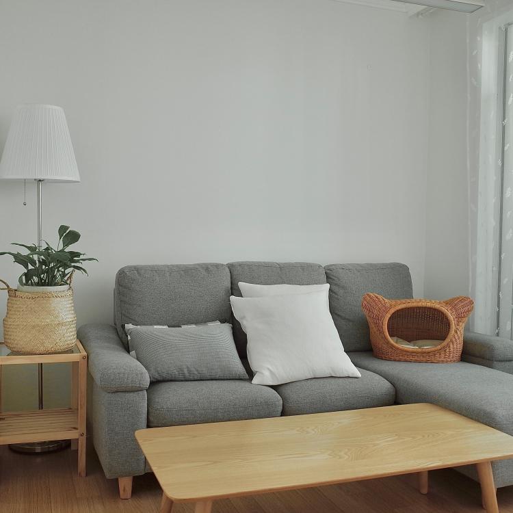 소파 카우치 자리에 고양이 숨숨집까지😚 편안한 침실 한 켠의 공간이에요!