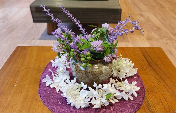 들꽃으로 꾸며본 꽃입니다 흰꽃은 나무수국예요