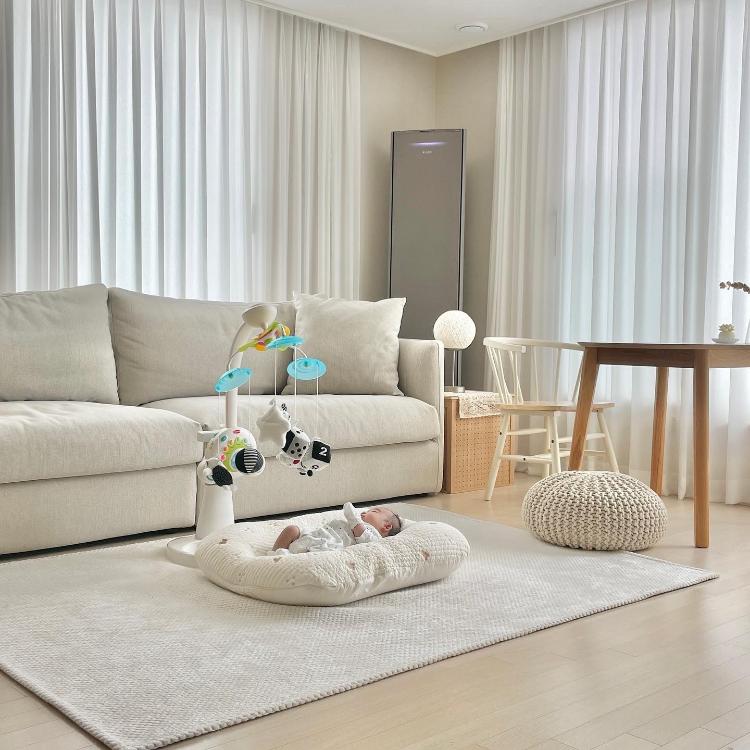 아기와 함께 지내고 있는 거실이에요! 모빌은 빠질 수 없죠ㅎㅎ