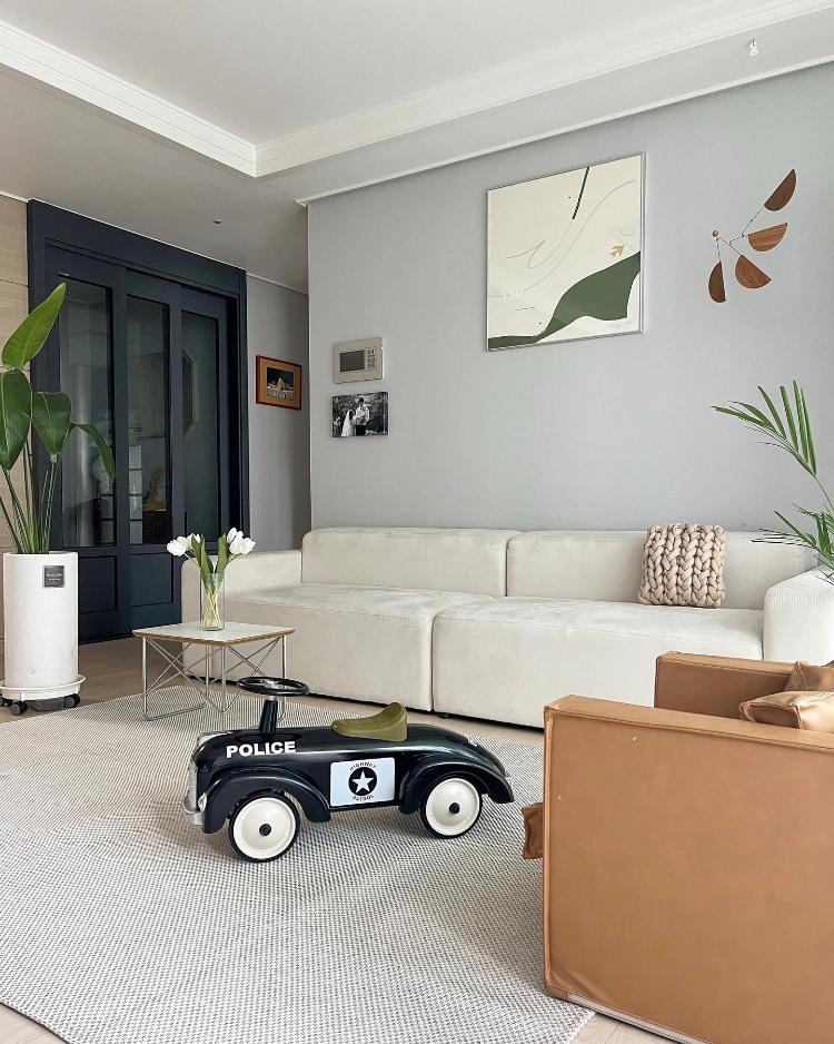 초록 그림과 화분들로 싱그러운 그린 무드의 거실이에요
