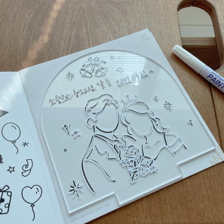 뒤에 있는 종이를 배경으로 따라그리고, 나무 판위에 세워줘요