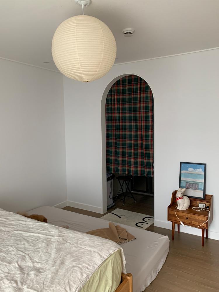 따뜻해보이는 체크원단으로 가리개커튼을 달아주었어요💚