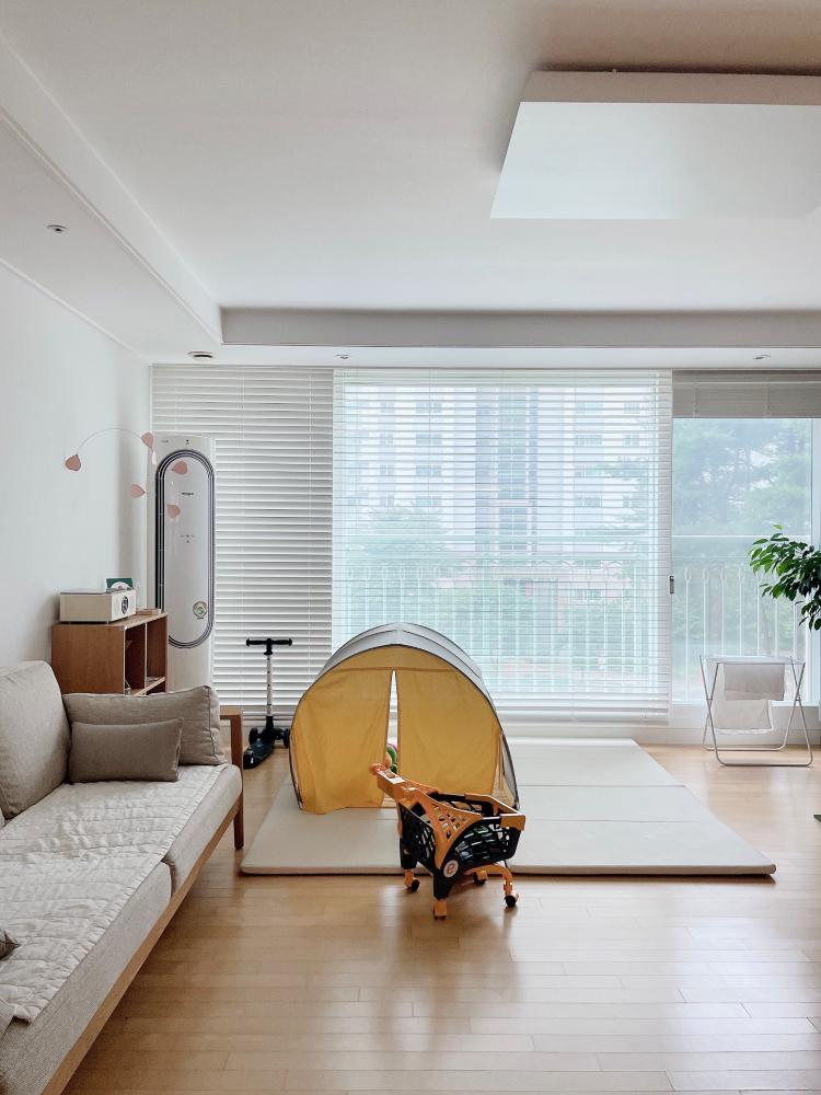 벌써 아지트를 만든 아이. 텐트옆에 킥보트 주차까지 해놓았네요.