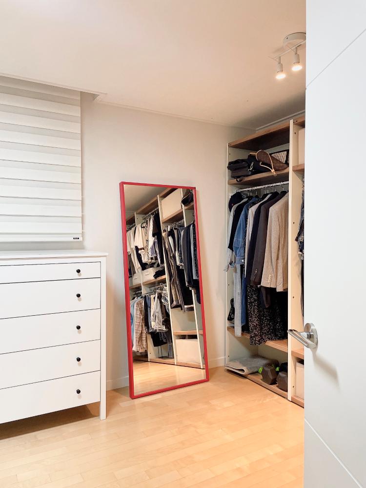 따뜻한 조명이 있는 드레스룸.