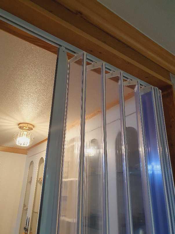주방과 거실사이~ 요리하면 음식냄새가 거실에 가득해서 빠지질않아요. 그래서 투명자바라를 가운데 설치했어요.