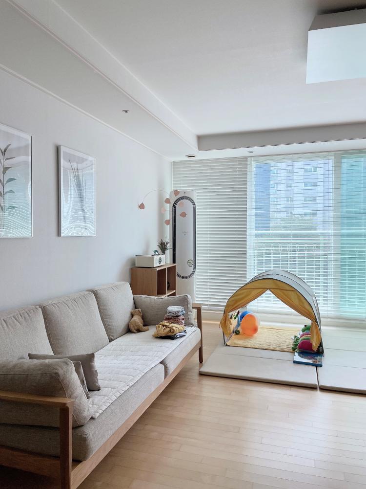 아이는 텐트에서 저는 쇼파에서 놀아요😁