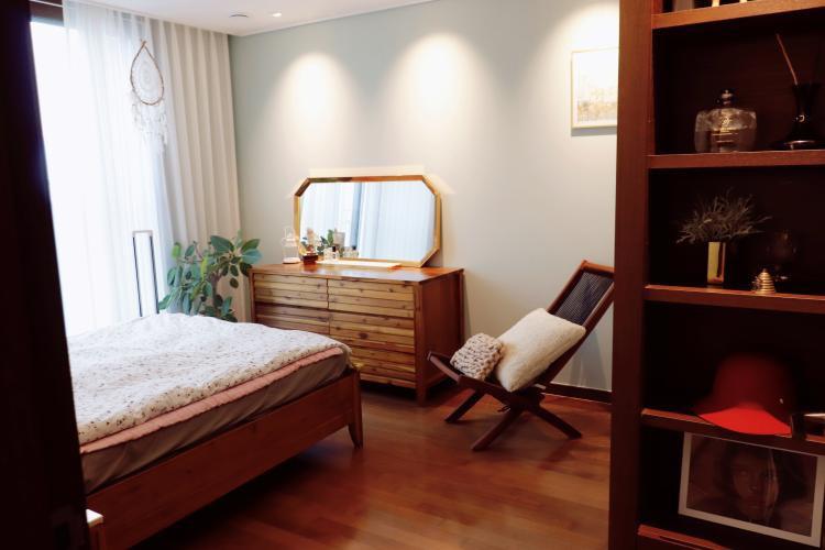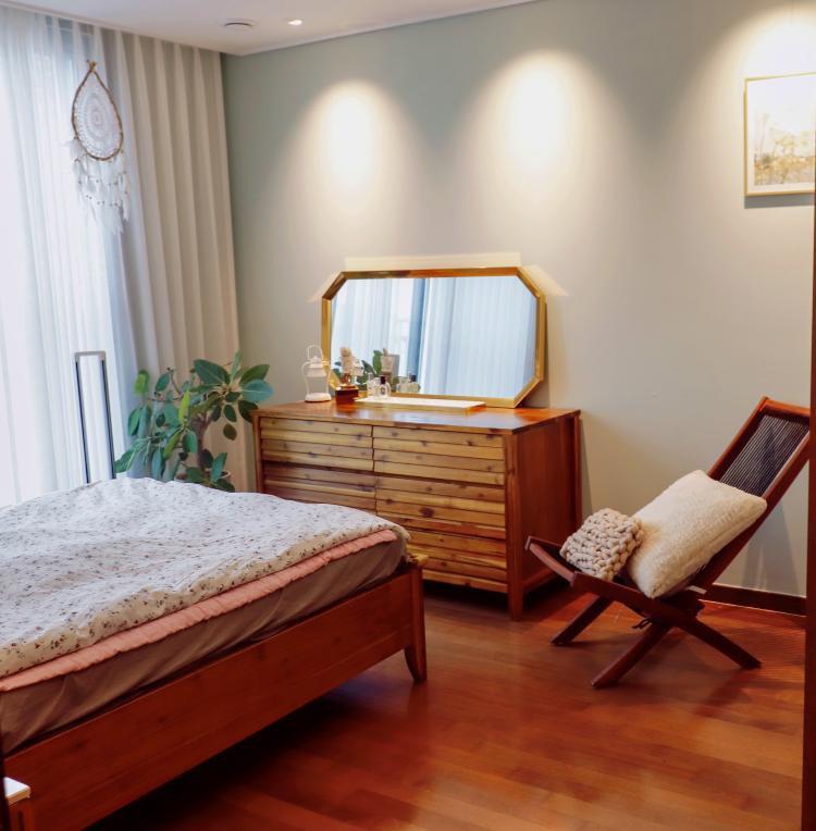 우드 제품들로 꾸민 아늑한 침실이에요.