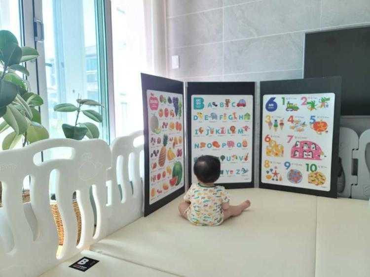 엄마가 만들어준 그림 병풍 보고 있는 아들 뒷모습이