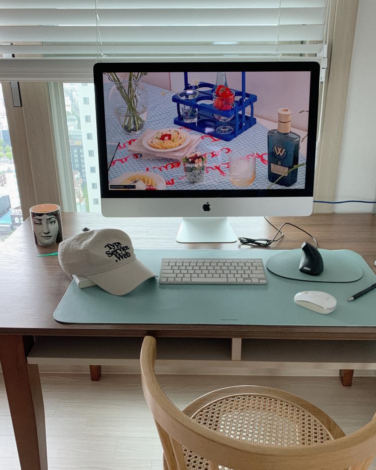 상큼한 민트칼라로 포인트를 준 데스크테리어💚