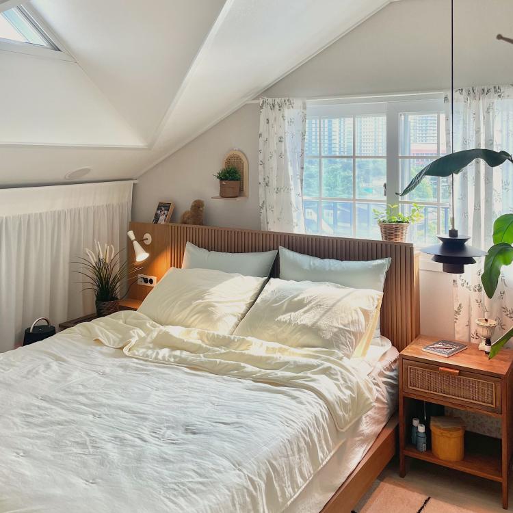 햇빛이 들어 아늑한 느낌이 드는 침실:)