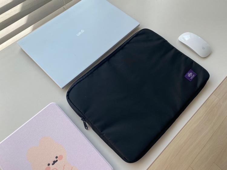 부드러운 자크 사용감도 만족스럽고, 무겁지 않은 경량 스타일의 노트북 파우치라 가벼운 그램스타일에 딱 어울리는 가방이라 손이 자꾸 가게되더라구요!