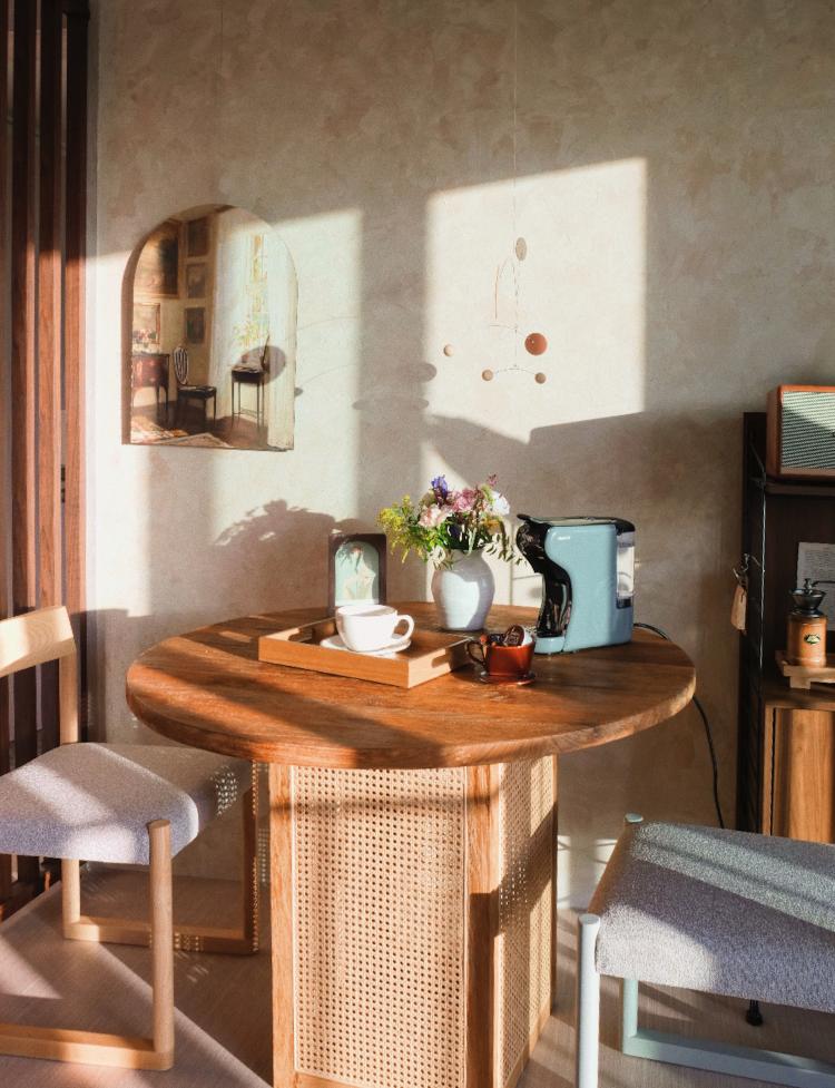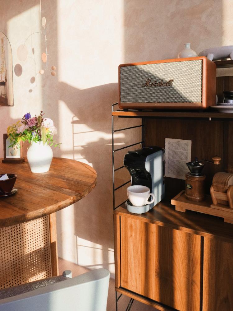 홈카페 장에 올려진 커피머신이 완전 찰떡으로 예뻐요.