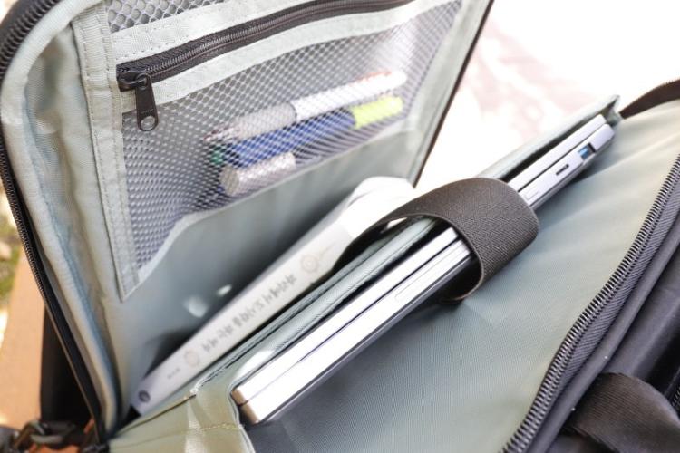 노트북 보관 포켓에는 17인치의 노트북을 넣을 수 있고 필기류를 보관하는 매쉬포켓이 있어 편리하게 활용 할 수 있답니다. 노트북 앞 포켓에는 구김으로부터 보호가 필요한 중요한 서류를 넣으면 딱이랍니다:)