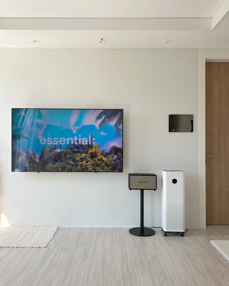 거실은 깔끔하게 유지하고 싶어서 tv장을 두지않았어요