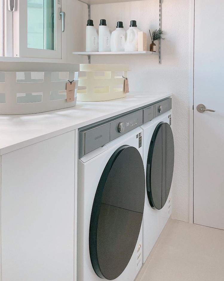 세탁기 건조기를 병렬 설치하고 선반장을 만들어서