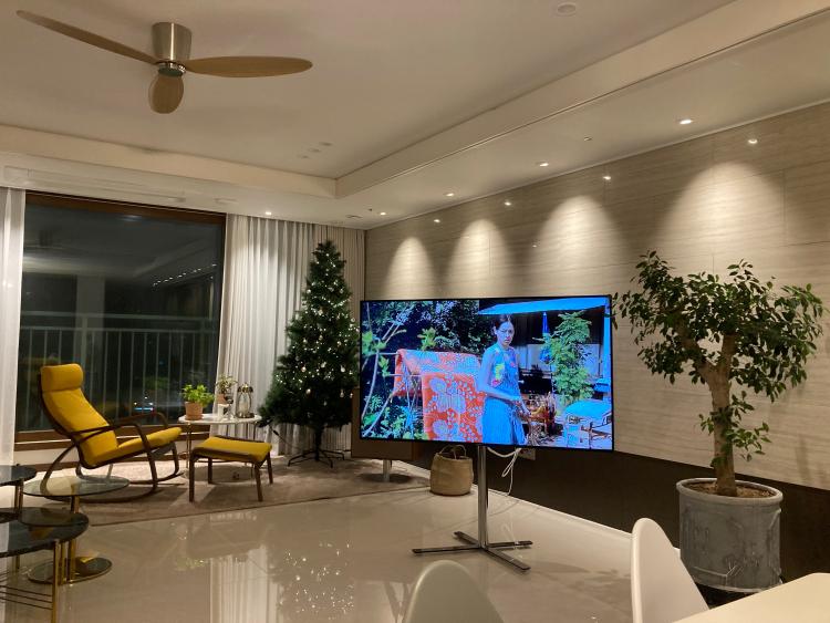 은은한 조명으로 아늑한 우리집 거실이에요.