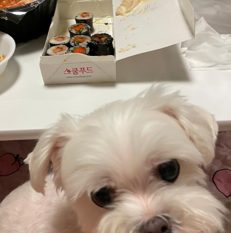 반려견 댕이에요! 탁자에서 뭘 먹을 때면 꼭 제 앞에 앉아서 간절한 눈빛을 보낸답니다 ㅠㅠ 너는 못먹는거야