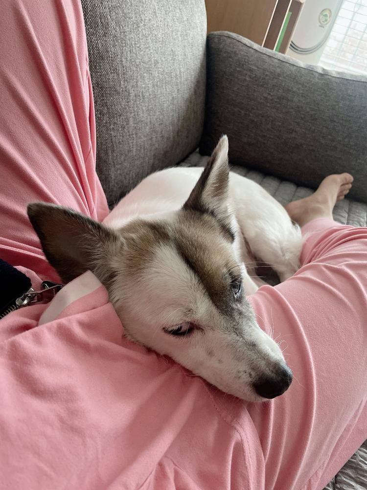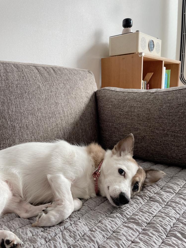 쇼파에서 편히 쉬고있는 저희집 댕댕이에요🐶