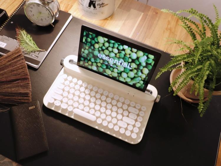 디자인토 레트로 감성을 살려 너무 귀엽답니다. 이렇게 거치대 일체형이라 테블릿이나 핸드폰을 바로 올려둘 수 있어요:)