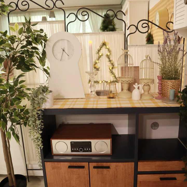 크리스마스 장식으로 꾸미는 전자렌지 선반이에요
