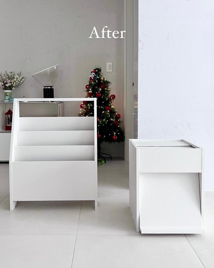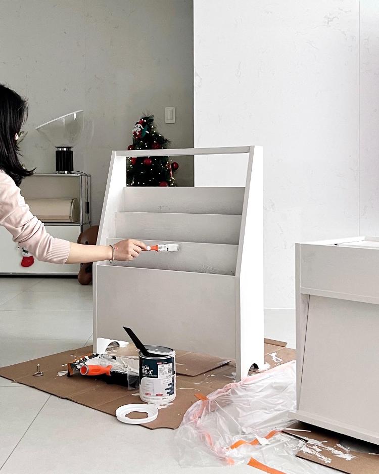 집에 있던 월넛 가구를 따뜻한 화이트 컬러로 페인트칠 해봤어요🤍 기존에 있던 가구인데 새로 산 것 같은 느낌이 들어요 ◡̈ ✨