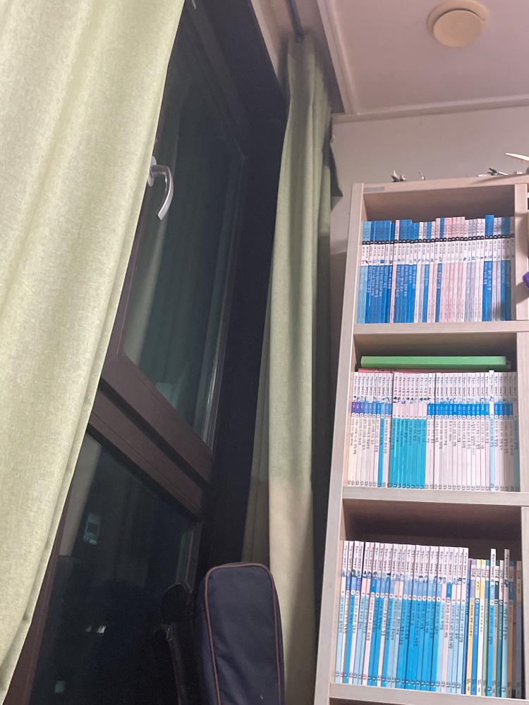 바로 앞에 기타를 뒀고 책장이 이뻐요