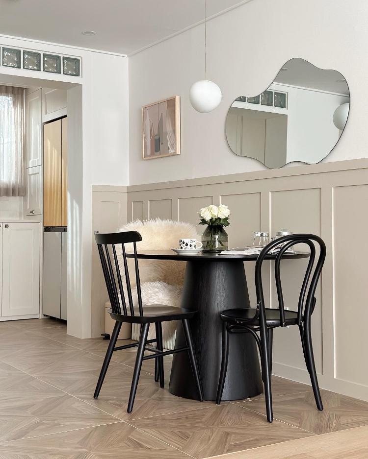 비정형 모양의 거울과 조명까지 애정하는 주방 공간이에요!