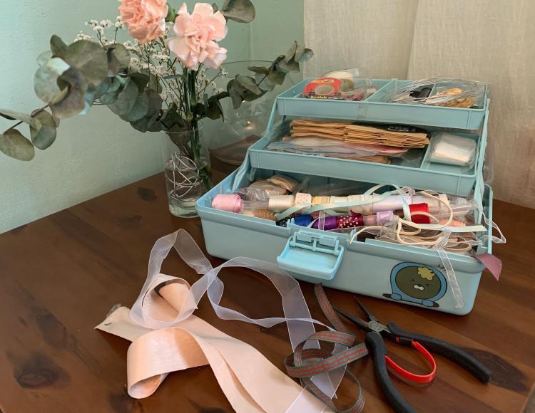 리본을 가득 모아놓은 공구상자를 꺼내와서