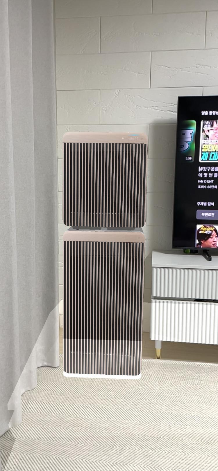 TV 옆 남는 공간에 조명이나 공기청정기를 두고 싶어 ar로 보고있어요. 딱이네요 ㅎㅎㅎㅎ