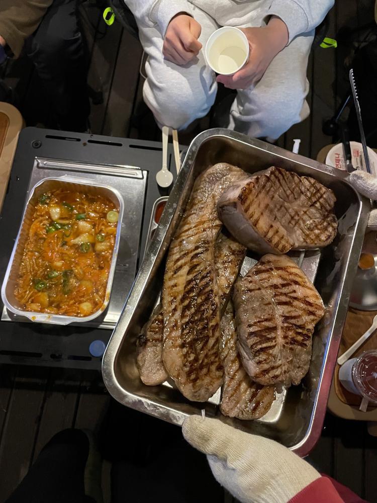 집 근처 깔끔한 캠핑장이 있어서 자주 찾았는데 이번엔 남편이 저몰래 흑돼지와 석화를 주문하고 캠핑장을 예약해서 처가집 식구들을 모두 초대했어요:)