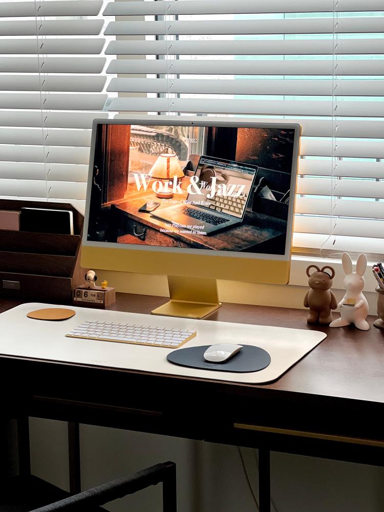 서재 데스크매트 컬러를 바꿔봤어요 ◡̈ 오늘의 새로운 시도🤍💛