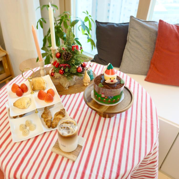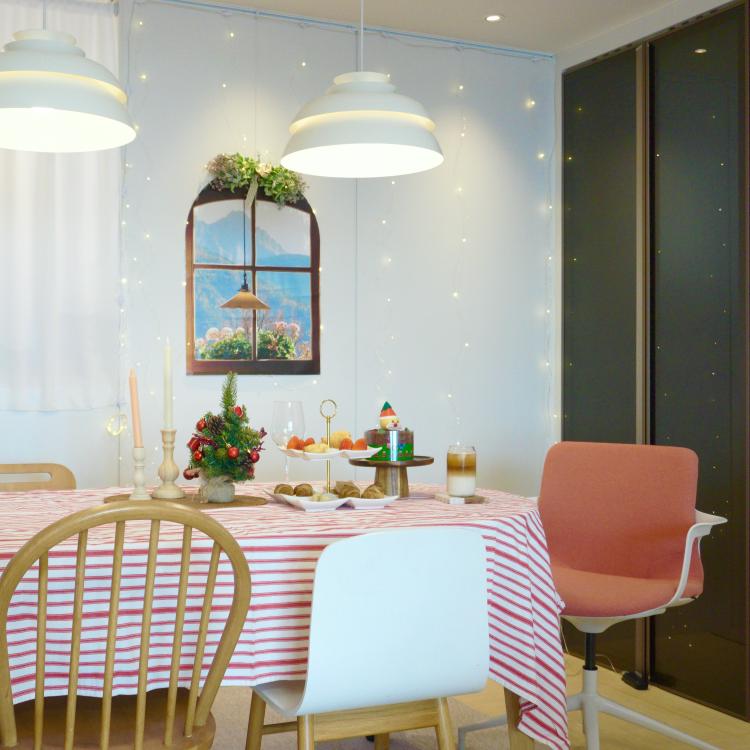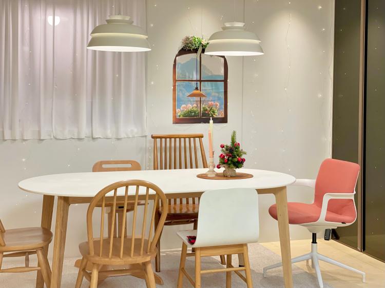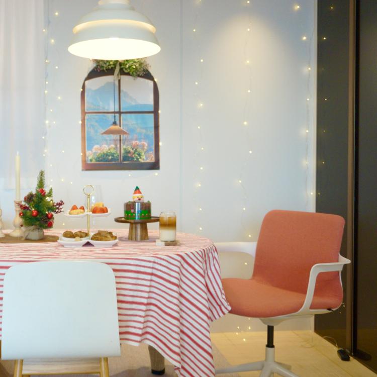 큰 트리는 없지만 벽에 전구도 달아주고 테이블에 작는 트리도 디피했어요