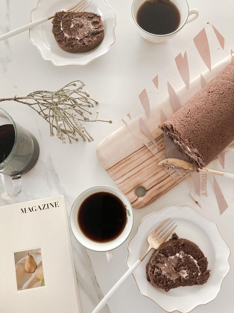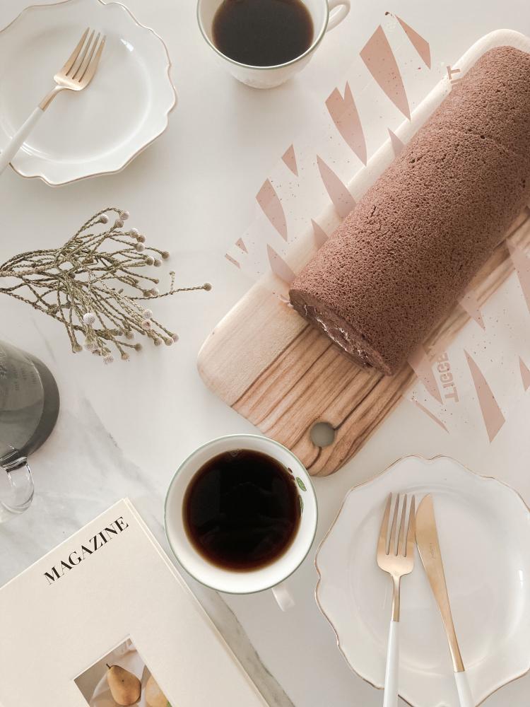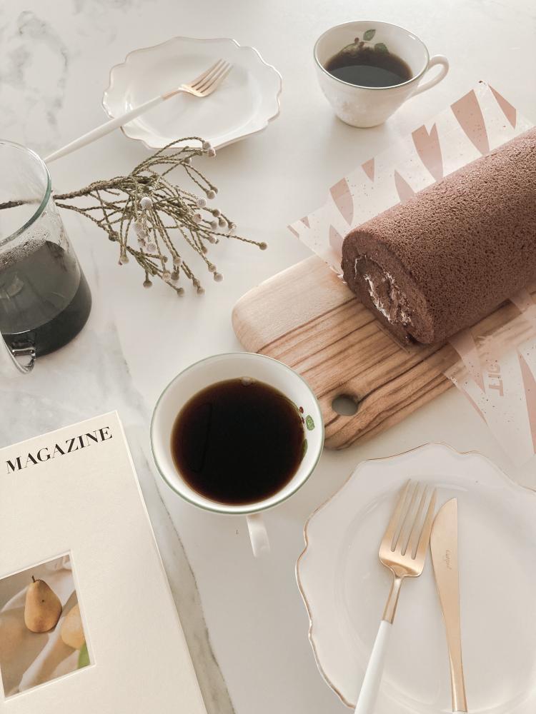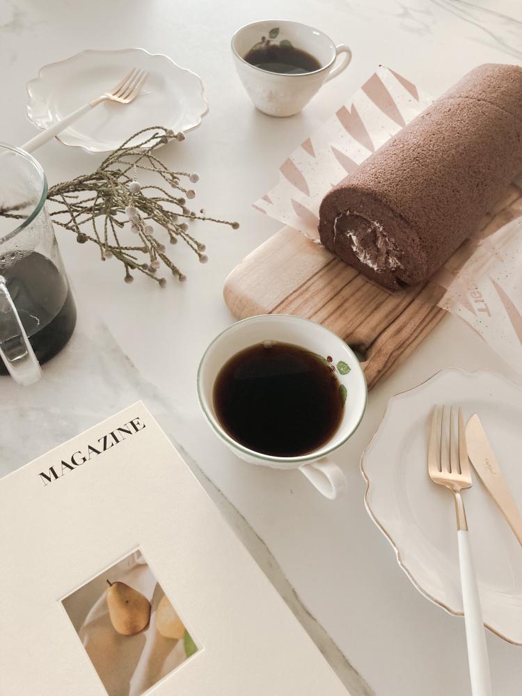 고소한 커피향과 달콤한 초코케이크가 함께하는 아침식탁이에요🌿