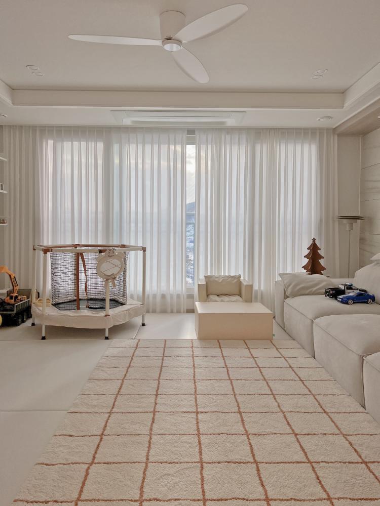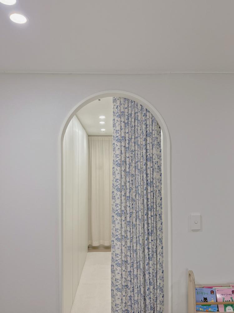 러그도 깔고 문앞에는 기다란 커튼을 달아주었어요.