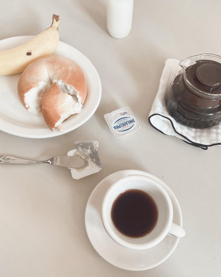 오늘 아침은 베이글 바나나 그리고 드립커피
